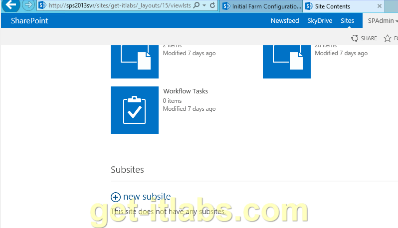 Şimdi bu alt siteleri oluşturmaya başlayabiliriz. Bunun için Settings menüsünden Site Content’e tıklıyoruz.