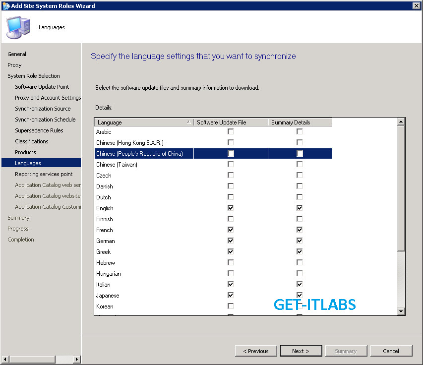 Add Site System Roles Wizardı başlatarak WSUS Syncronization Reportin Service Application Catalog gibi ayarlarımızı yapacağız.