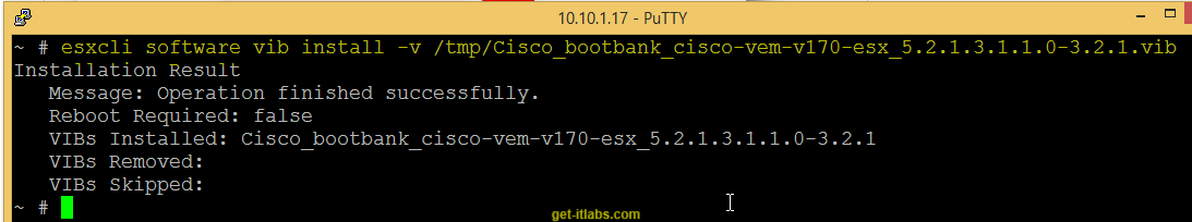 esxcli software vib install -v /tmp/Cisco_bootbank_cisco-vem-v170-esx_5.2.1.3.1.1.0-3.2.1.vib