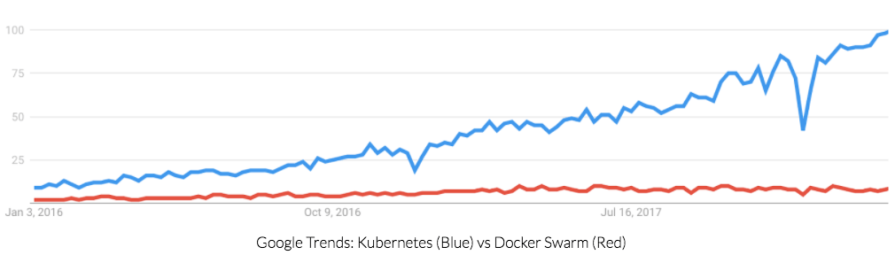 Peki Docker kendisi bu süreci yönetecek bir ürün geliştirmedimi evet “Docker Swarm” fakat rakamlar gösteriyorki son zamanlarda tercih edilen ürün genel olarak Kubernete platformu olmaktadır. Tabi teknoloji savaşından ziyade maksadımız teknolojiyi anlamak devam ediyoruz.