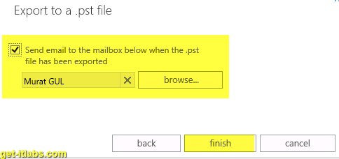 Export işlemi durumu hakkında bilgilendirme maili için bu seçeneği seçebiliriz ve sonrasında Finish butonu ile Export işleminini sonlandırıyoruz.