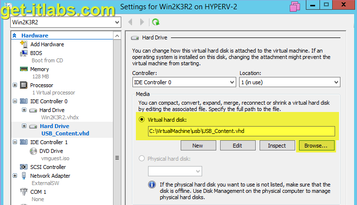 Merhaba, art arda yayınlayacak olduğum üç makalemde sizlere Hyper-V sanal sunucularda USB device kullanım yöntemlerini anlatmaya çalışacağım. Bildiğiniz gibi Hyper-V Server 2012 R2 ile USB Passthrough desteği gelmiş fakat bütün işletim sistemlerinde desteklenmemektedir. Bu yüzden makalelerimizde USB Disk kullanım yöntemlerini tek tek inceleyeceğiz. Bunlardan ilki, en ilkel yöntem olan USB içeriğinin sanal diske taşınması yöntemidir.