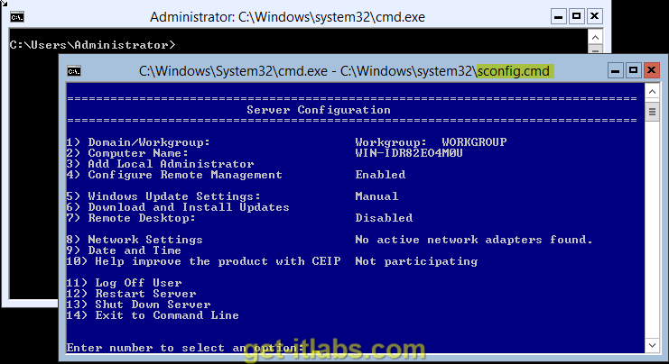 9. Sunucumuz açıldığında sconfig olarak isimlendirdiğimiz temel server ayarlarını yaparken kullanacağımız pencere bizi karşılıyor.