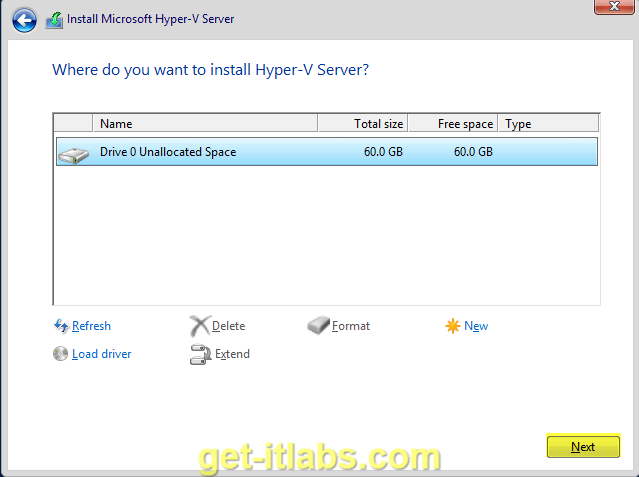 6. Kurulum yapılacak lokasyonu seçiyoruz. Benim tek diskim olduğu için Next ile devam ediyorum.