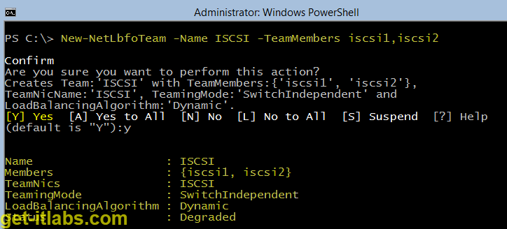 New-NetLbfoTeam –Name “İsim” –TeamMembers Nic1,Nic2,Nic3