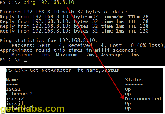 Team üyesi olan Ethernet kartlarından birisinin fiziksel bağlantısını kesip Ping testimizi gerçekleştiriyoruz ve sonucun başarılı olduğunu görüyoruz.