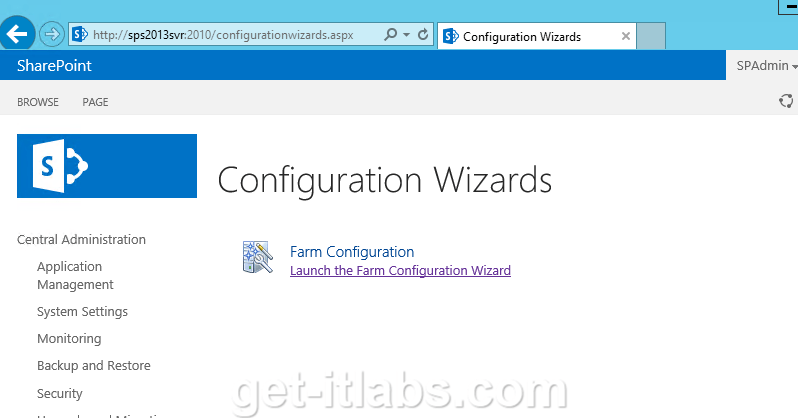 Açılan pencereden ‘Launch the Farm Configuration Wizard’ linkine tıklıyoruz.