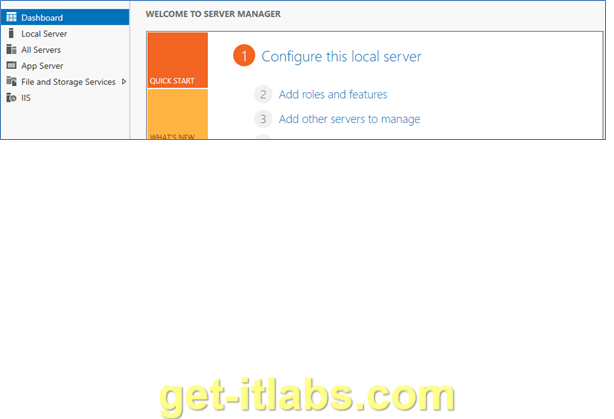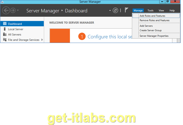 Öncelikle “Server Manager” dan ‘Manage’ menüsü altındaki ‘Add Roles and Features’ a tıklıyoruz.