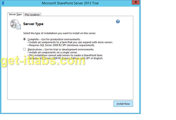 Sunucu tipinde ‘Complete’ seçeneğini seçip ‘Install Now’ butonuyla kurulumu başlatıyoruz.