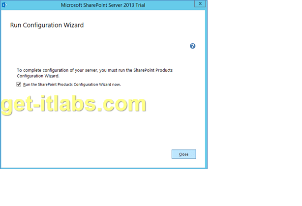 Kurulum bittikten sonra aşağıdaki kutucuk işaretlenmiş şekilde ‘Close’ tuşu ile çıkış yapıyoruz ve sunucumuzun konfigürasyonuna başlıyoruz. Yanlışlıkla kutucuk işareti kalkmış olursa Configuration Wizard için Başlat’tan Search ile veya dosyadan yüklü programlardan Sharepoint 2013 Ürünlerinin altında bulabilirsiniz.
