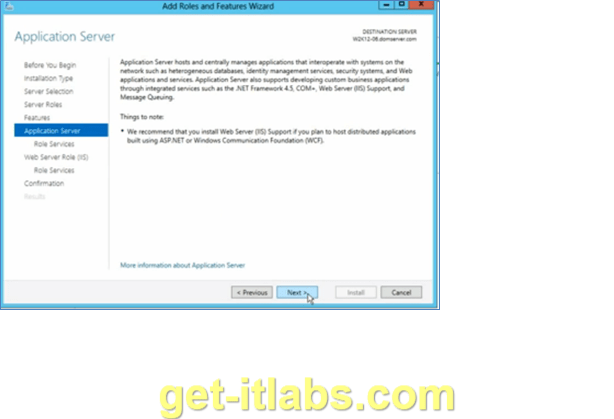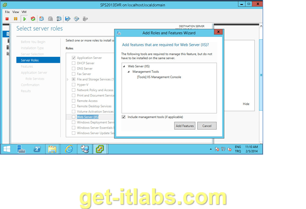 Server Roles kısmından ‘Application Server’ ve ‘Web Server (IIS)’ kutucuklarını seçeceğiz. Bu kısımda ve diğer özellik (features) ekleme kısımlarında bazı kutucuklar seçtiğimizde otomatik olarak bazı özelliklerin eklenmesine yönelik pencereler açılacaktır. Bunları eklemek zorundayız. ’Next’ ile ilerliyoruz.