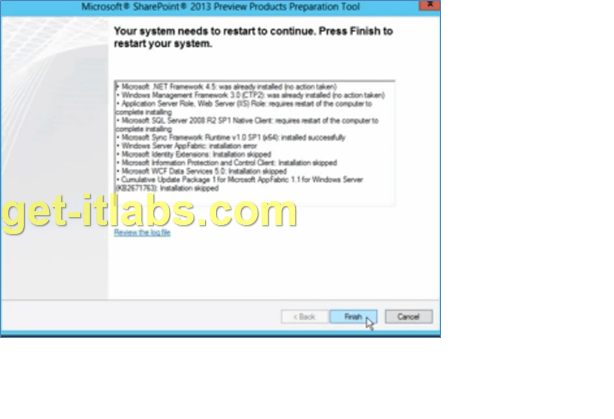 Yeniden başlatılan sunucumuz açıldığında kurulum otomatik olarak tamamlanacak ve ‘Finish’ ile ön gereksinimleri yüklemiş olacağız. Bu ön yüklemeleri yapmazsak Kurulum (Setup) çalışmayacaktır.