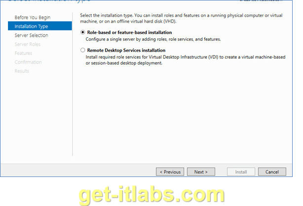 Installation Type bölümünde ‘Role-based or feature-based installation’ seçili olarak devam ediyoruz. ‘Next’ ile ilerliyoruz.