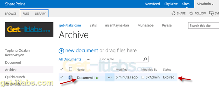 “Archive” kitaplığımıza bu dokümanın “Expired” olarak kopyalandığını görebiliyoruz.