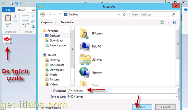 Küçük alan içerisine ben küçük bir ok figurü kullandım. Siz hazır şekillerden birini kullanabilirsiniz. Masaüstüne kaydettim.