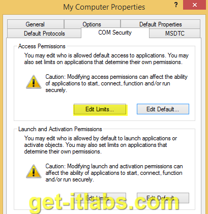 Com Security menüsü içerisinde bulunan Acces Permission çerçevesindeki Edit Limits butonuna tıklıyoruz.