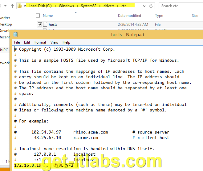 Eğer ortamda bir DNS sunucusu yok ve Hyper-V sunucu ismi DNS ile çözümlenemiyorsa host.etc dosyasına Hyper-V sunucumuzu eklemeliyiz.