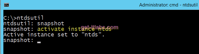 ntdsutil “Activate Instance NTDS” snapshot create quit quit