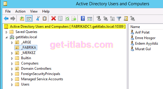 Get-ADUser ayyildiz.erdem –Server fabrikadc1.getitlabs.local:10389
