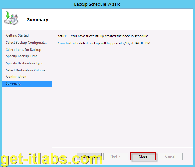 Zamanlanmış görevimizin oluşturulmuş olduğuna dair bilgi penceresini Close butonu ile kapatıyoruz.